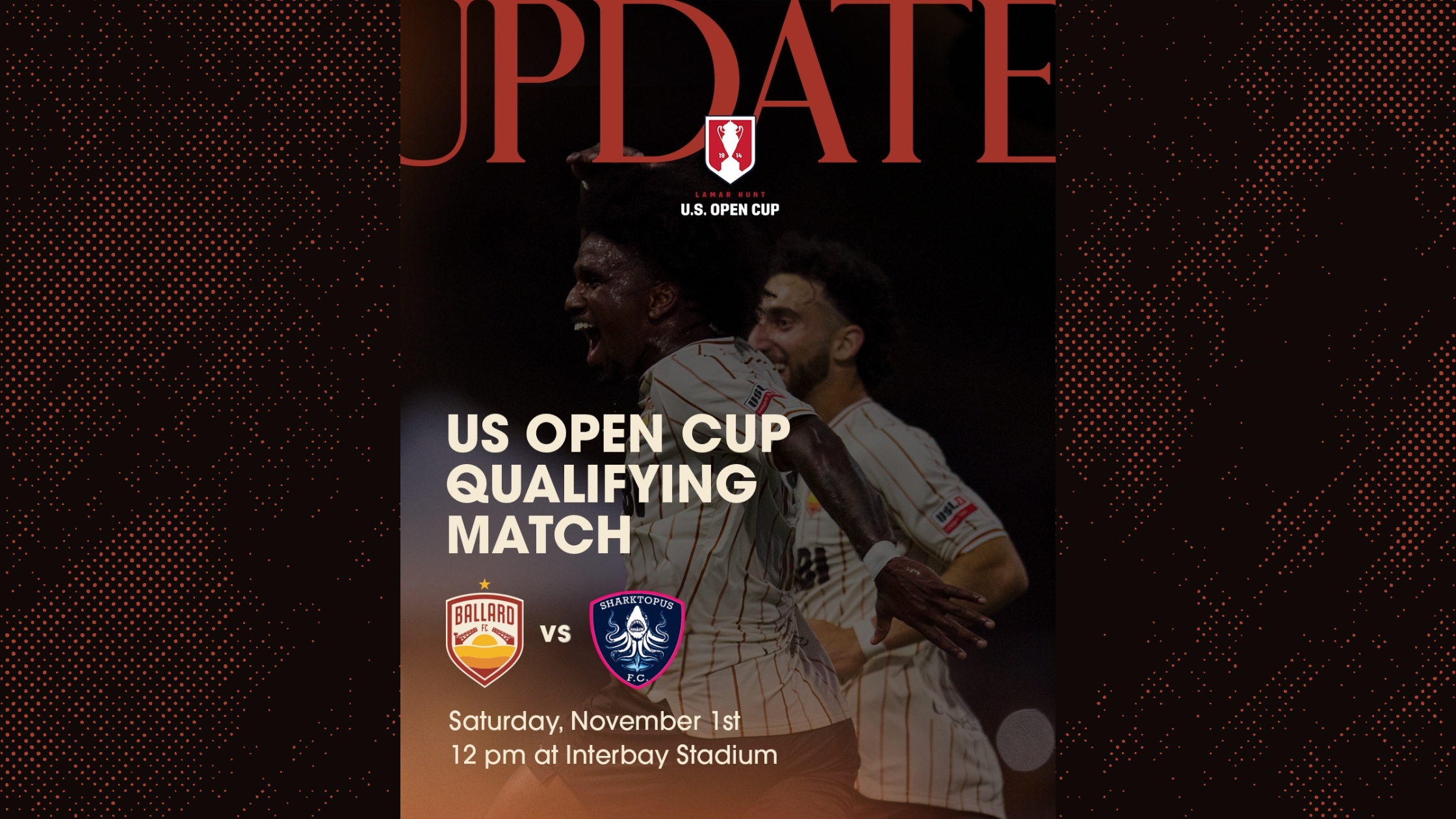 Ballard FC’s first-ever U.S. Open Cup Qualifying match will be Saturday, November 1st at 12:00pm as they host Sharktopus FC at Interbay Stadium. See the full match details here.