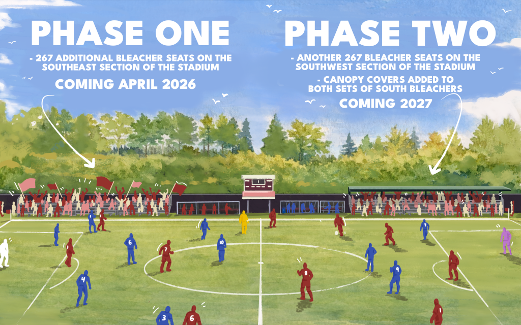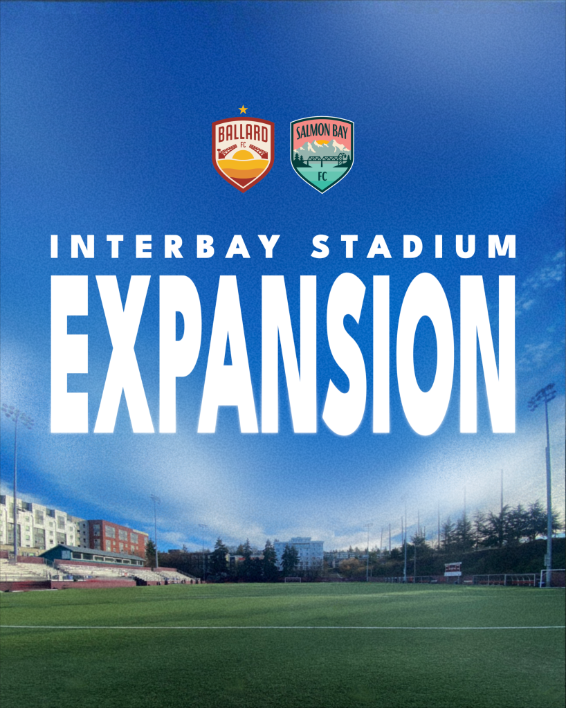 Ballard FC and Salmon Bay FC are proud to announce a phased seating expansion of Interbay Stadium to meet growing demand, and to reinforce the clubs’ long-term commitment to supporters, community partners, and everyone who utilizes the facility. Construction for the first phase is scheduled to begin and end in April 2026, adding 267 seats in advance of the 2026 season.